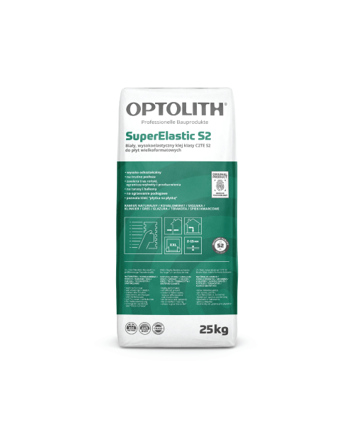 PLAČIAUOptoflex SuperElastic S2 - gamykloje paruoštas rinktinių užpildų, aukštos kokybės cemento ir priedų mišinys, kuriame yra traso. Dėl labai aukštų techninių parametrų ir didelio deformuojamumo (S2 klasė) šie klijai gali būti naudojami tiek smulkioms mozaikoms, tiek didžiausio XXL formato plytelėms klijuoti. Baltas cementas ir trasas apsaugo jautrias natūralaus akmens apdailos medžiagas.