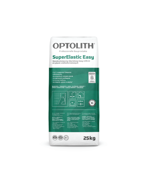 Optoflex SuperElastic Easy neslenkantys geliniai klijai pagaminti cemento ir kvarcinio smėlio pagrindu praturtinti cheminiais priedais, paruošiami sumaišius su vandeniu. Mišinyje naudojami specialus priedai leidžiantis reguliuoti vandens kiekį reikalingą mišinio paruošimui ir tokiu būdu keisti mišinio konsistenciją. Klijai puikiai tinka klijuoti ant vertikalių paviršių net didelio formato plyteles 60x60 cm nuo viršaus, be slinkimo rizikos.